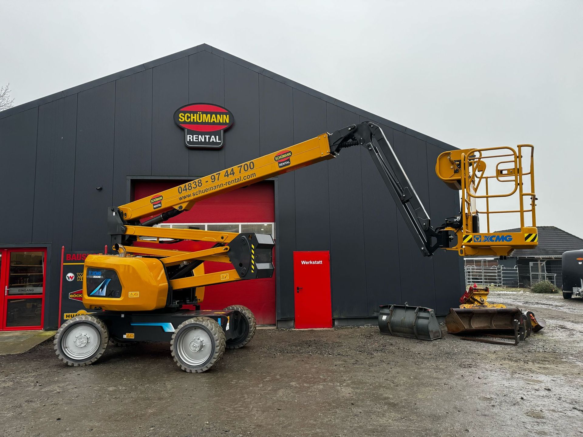 Hier finden Sie unsere Vermietung von Hubsteiger / Arbeitsbühnen und Holzschredder.